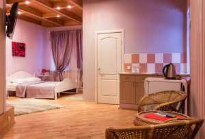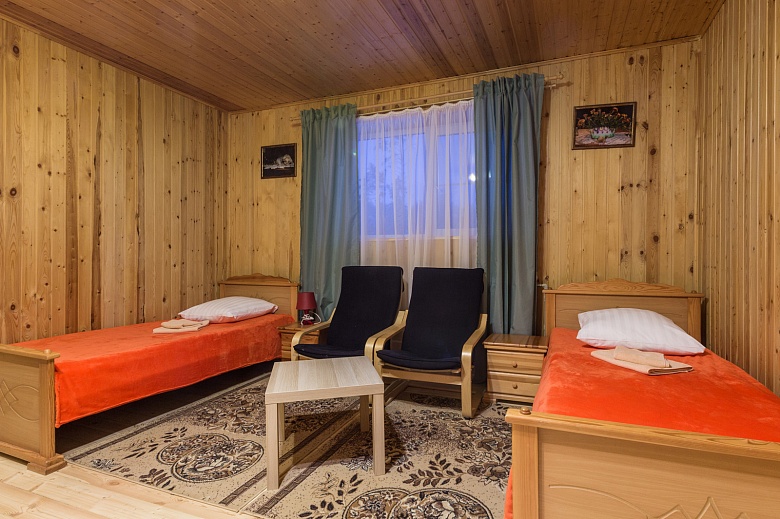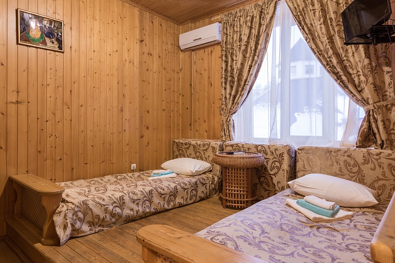 Возможно размещение с домашними животными за дополнительную плату в номерах корпуса №2, а также в финских домиках, стоимость — 1 000 руб. в сутки для животных до 7 кг, более 7 кг — 3000 руб. в сутки;  вносится депозит – 5 000 руб.