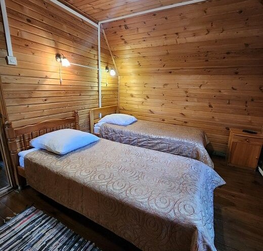1 комната: две раздельные кровати, ТВ, холодильник. 2 комната: одна кровать.