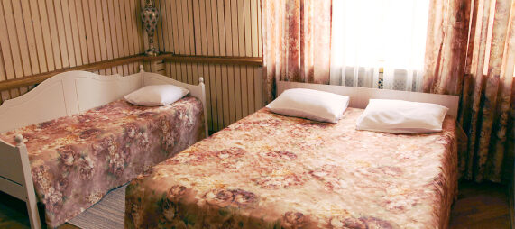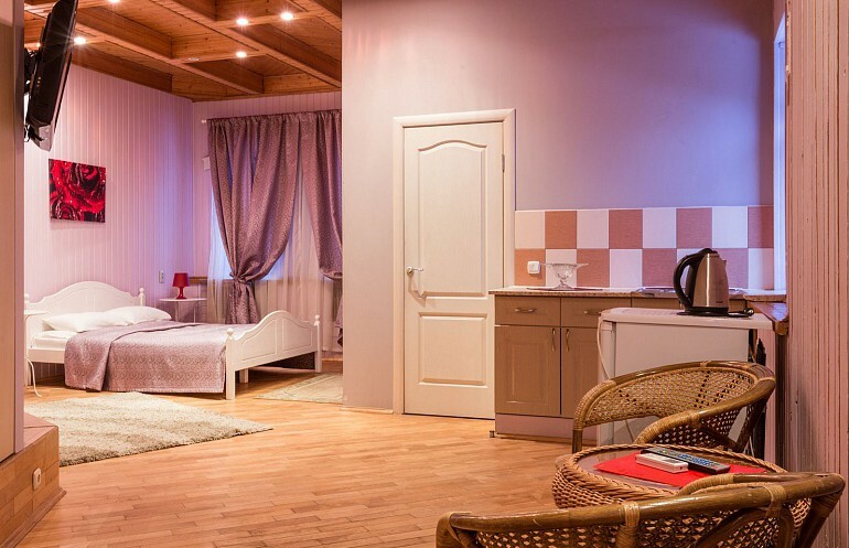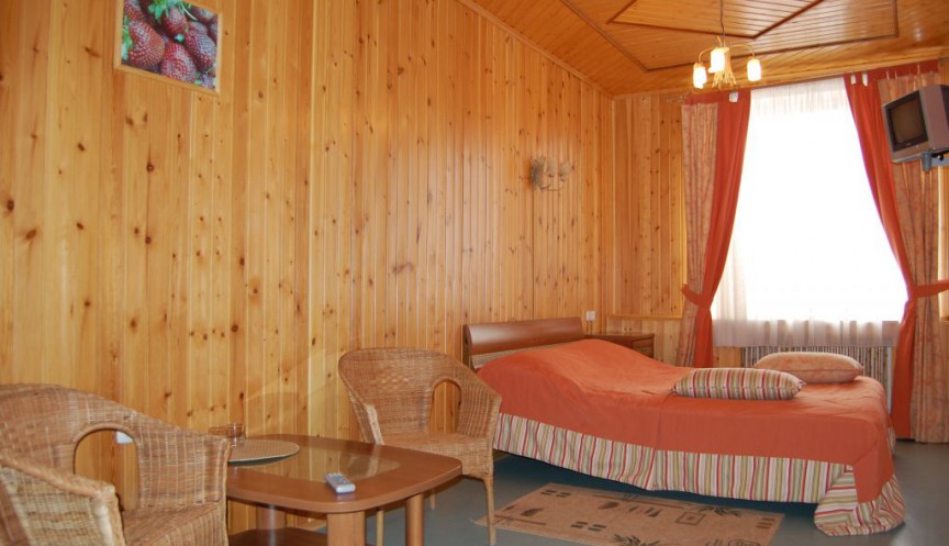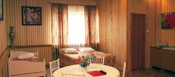 Всего в отеле Улиткино – 2 двухкомнатных номеров в 1 корпусе. В каждом номере: В номере: две двуспальные кровати, два ТВ, холодильник, ванна, фен, два отдельных входа. Возможно размещение 4-х человек на основных местах + 1 дополнительное место.